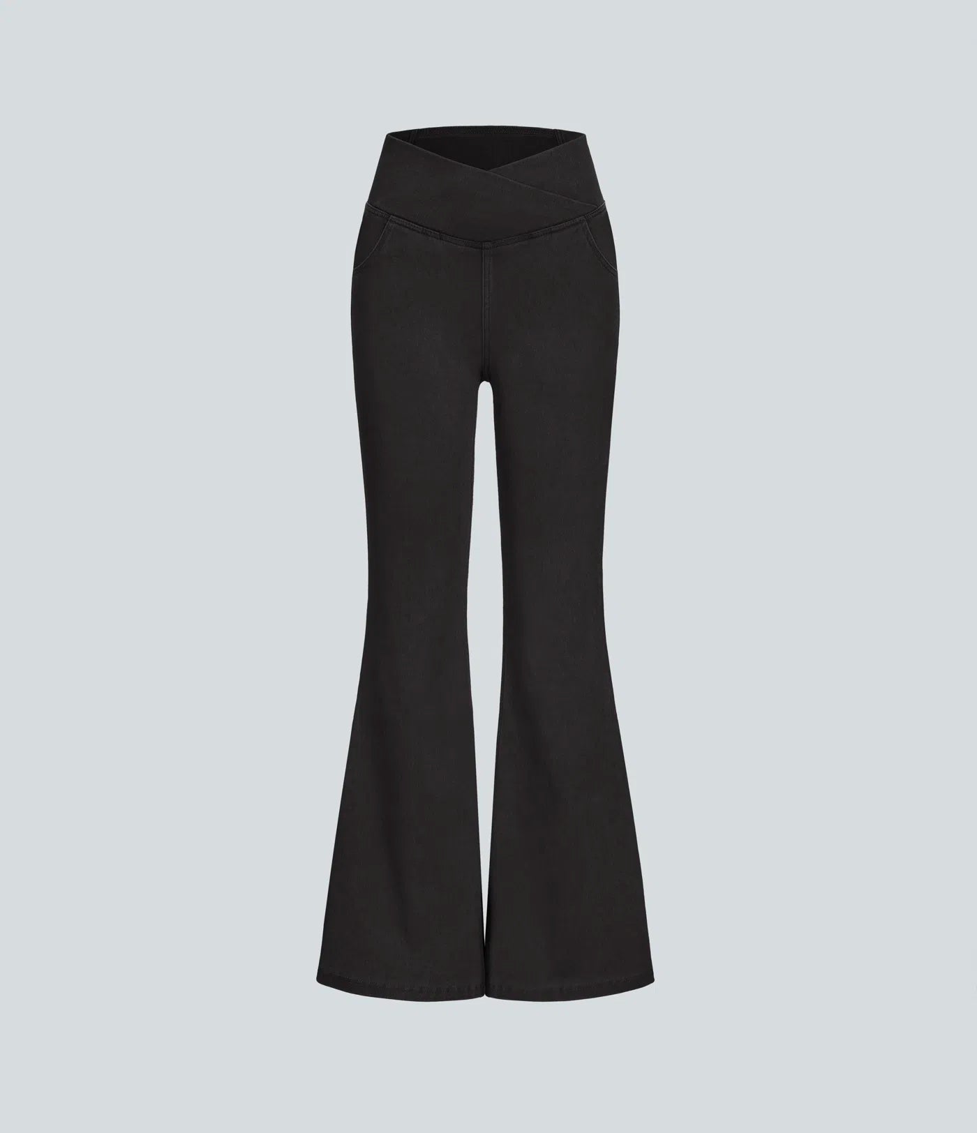 Meet your new go-to denim: the SF Flex™ High-Waisted Crossover Pocket Washed Casual Jeans. Designed to sculpt, smooth, and flatter, this elevated take on everyday jeans pairs timeless style with unmatched comfort. The crossover waist cinches beautifully, while the dramatic flare elongates your legs for a confident, head-turning silhouette.
